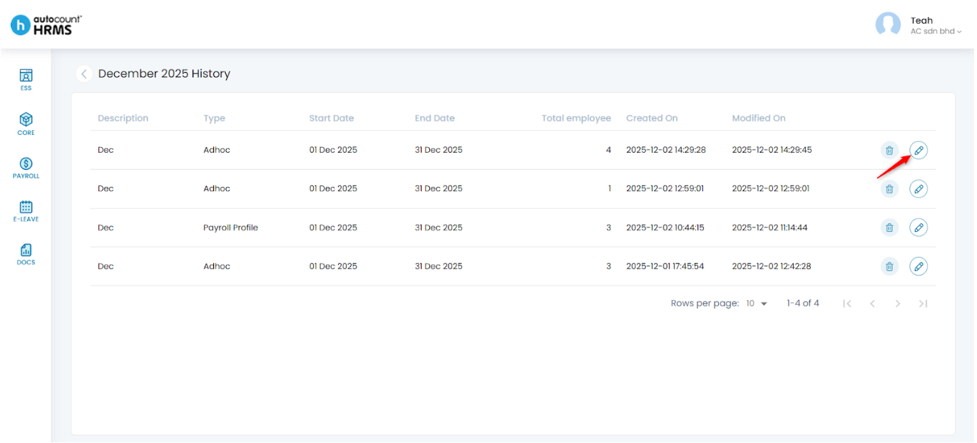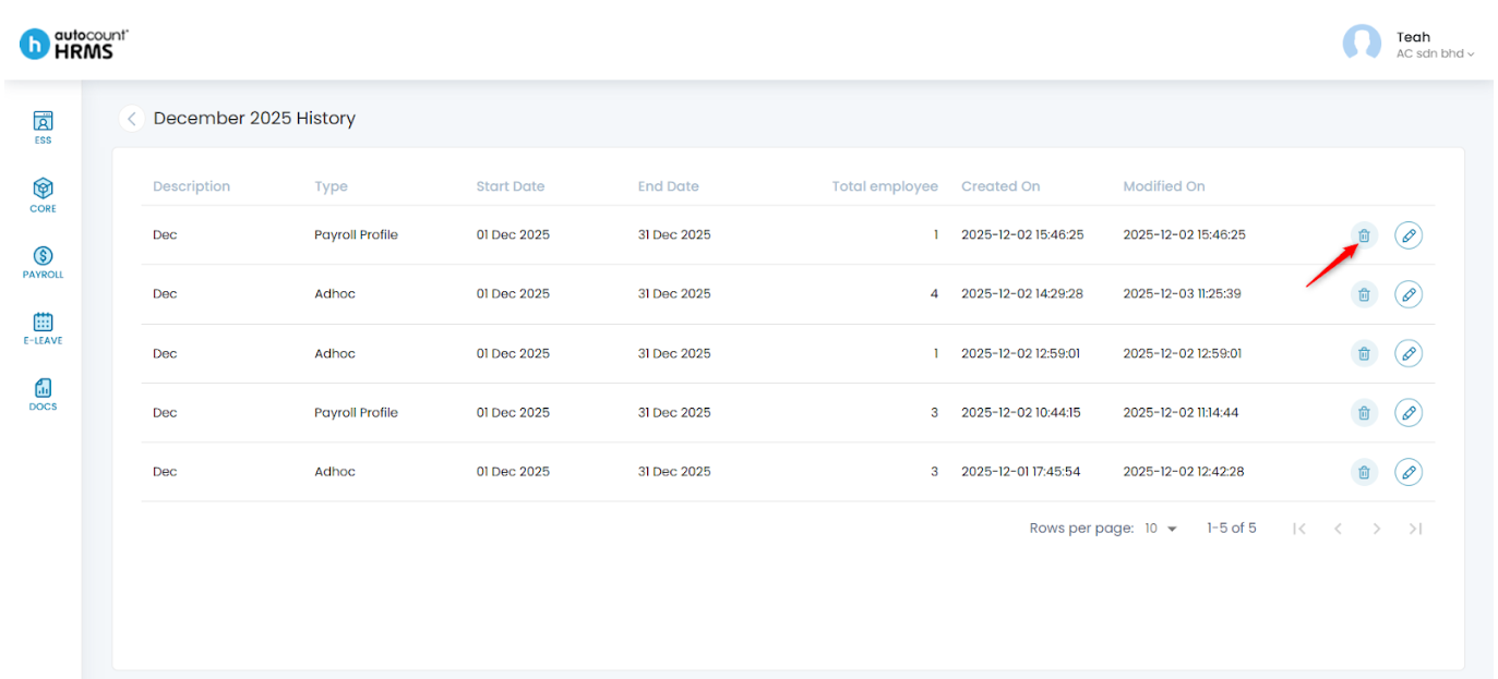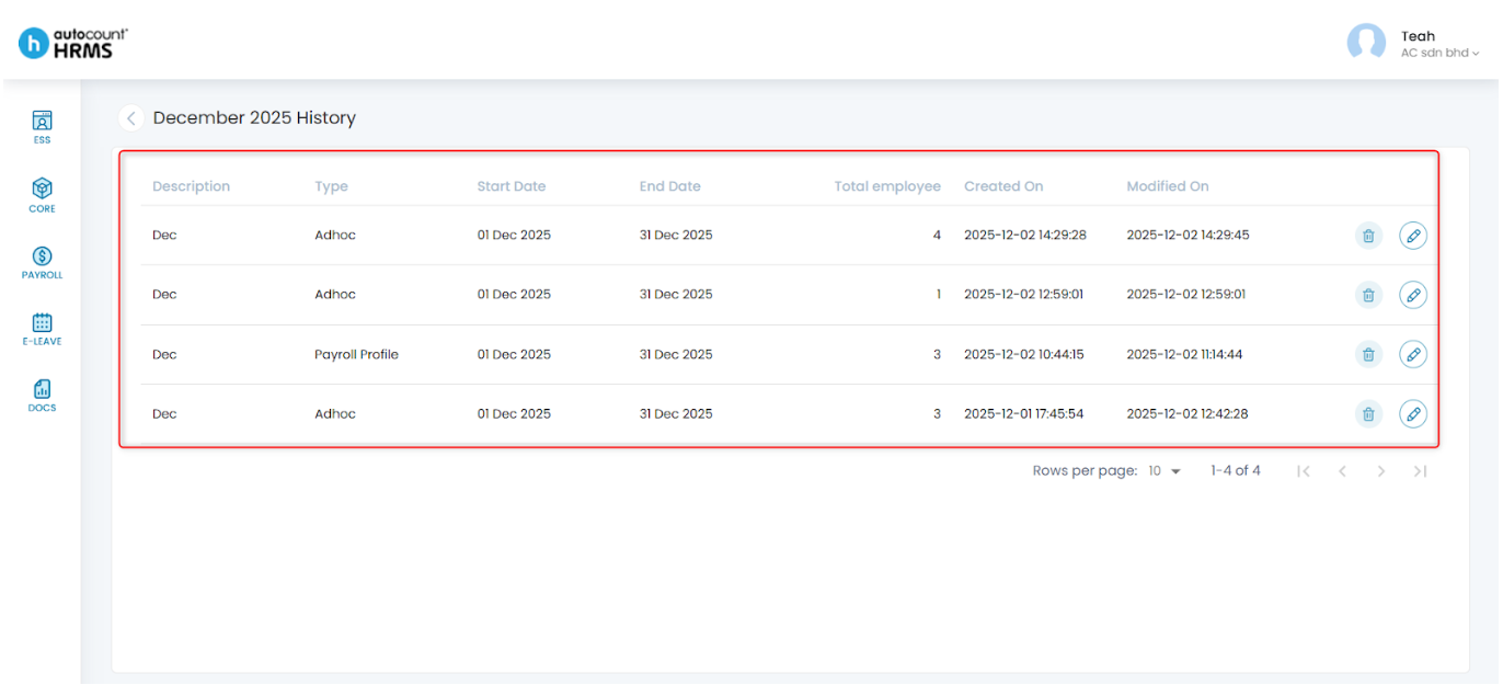 2. A list of all payroll processes completed for the selected month will be displayed.