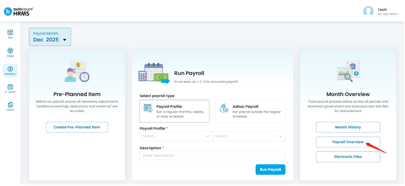 1. Select Payroll Overview.