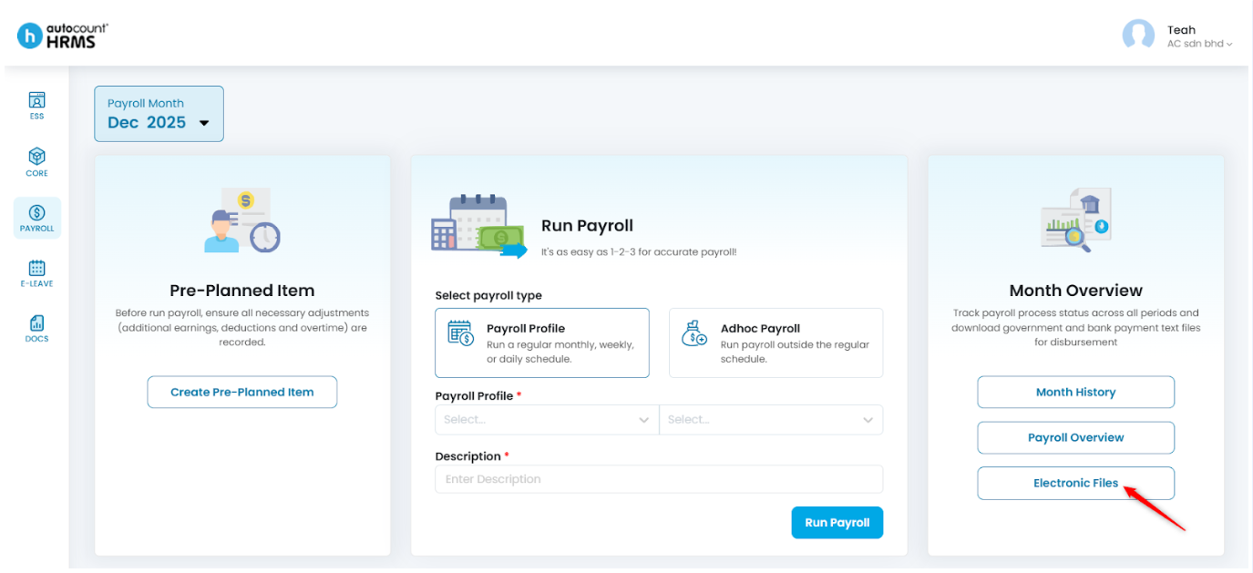 The Month Overview feature enables employers to track payroll activity, monitor the completeness of payroll processes, and manage payment-related tasks efficiently. Through this feature, employers can download payroll files and submit CPF contributions directly.