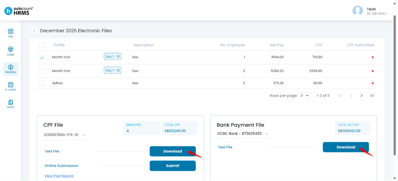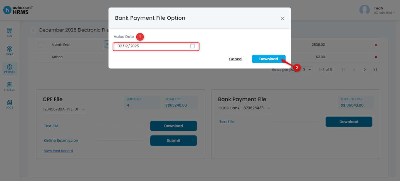 3. Click Download to download the text file for CPF or Bank Payment.