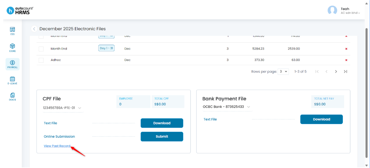 Note: To view past CPF file records, click View Past Record.