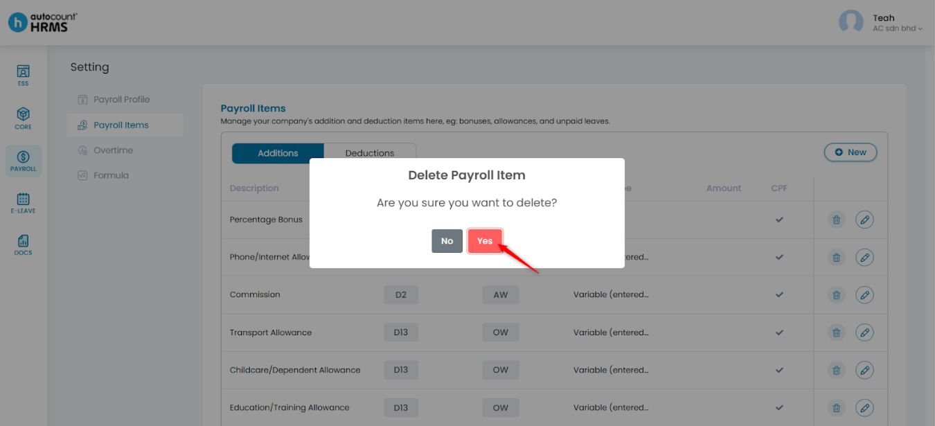 Steps to Delete a Payroll Item: