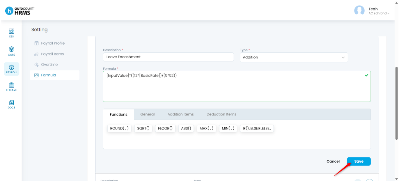 - Payroll Items Formula – Used to calculate additions and deductions. These formulas are fully editable.