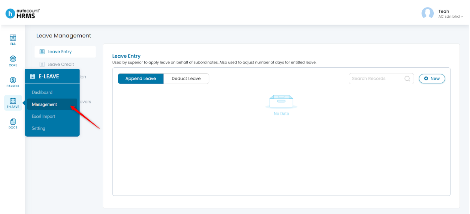 1. Go to E-Leave > Management.