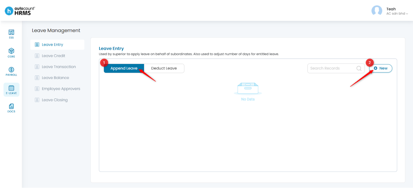 1. Under Leave Entry, select Append Leave. Then, click New.