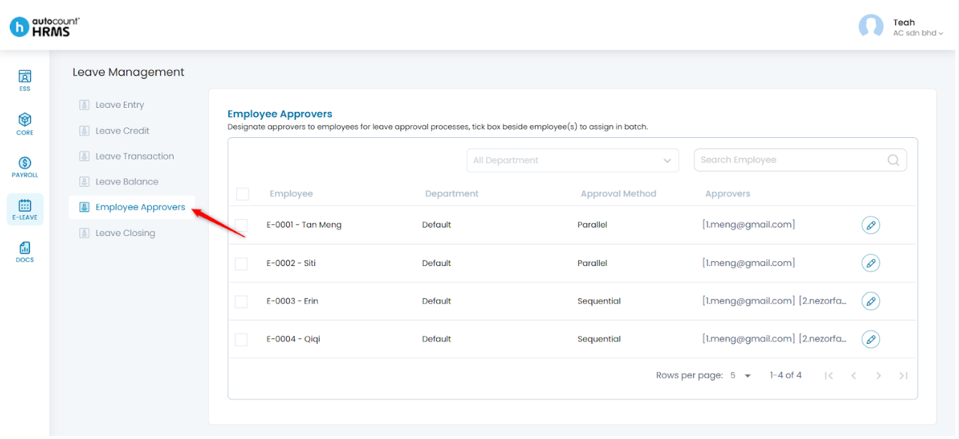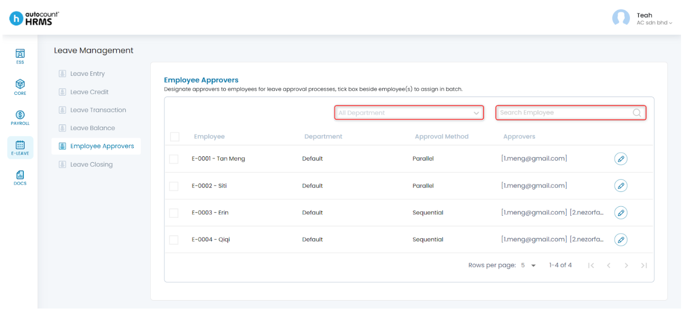 The Employee Approvers feature allows employers to assign specific approvers—typically managers or supervisors—to review and approve employees’ leave requests. This ensures a controlled approval workflow and supports adherence to company policies.