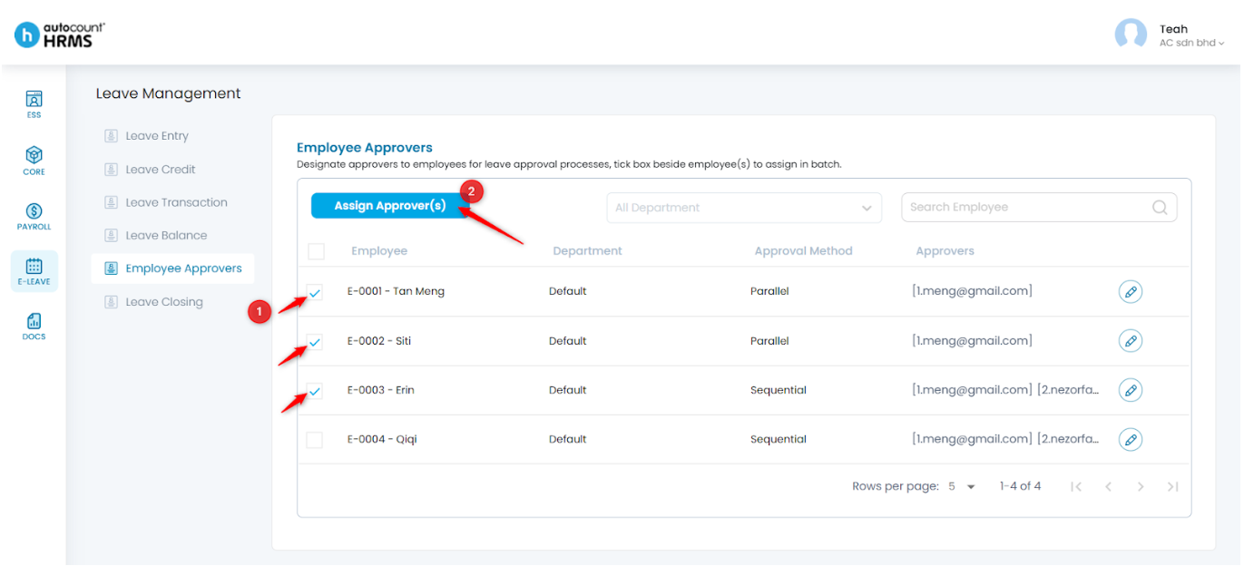 4. Tick the employees you want to assign approvers to, then click Assign Approver(s).