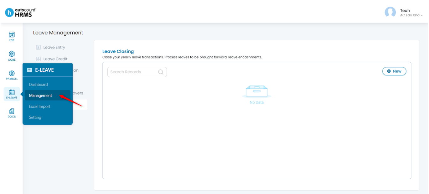 1. Go to E-Leave > Management.