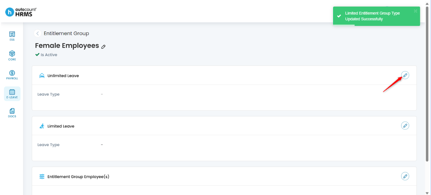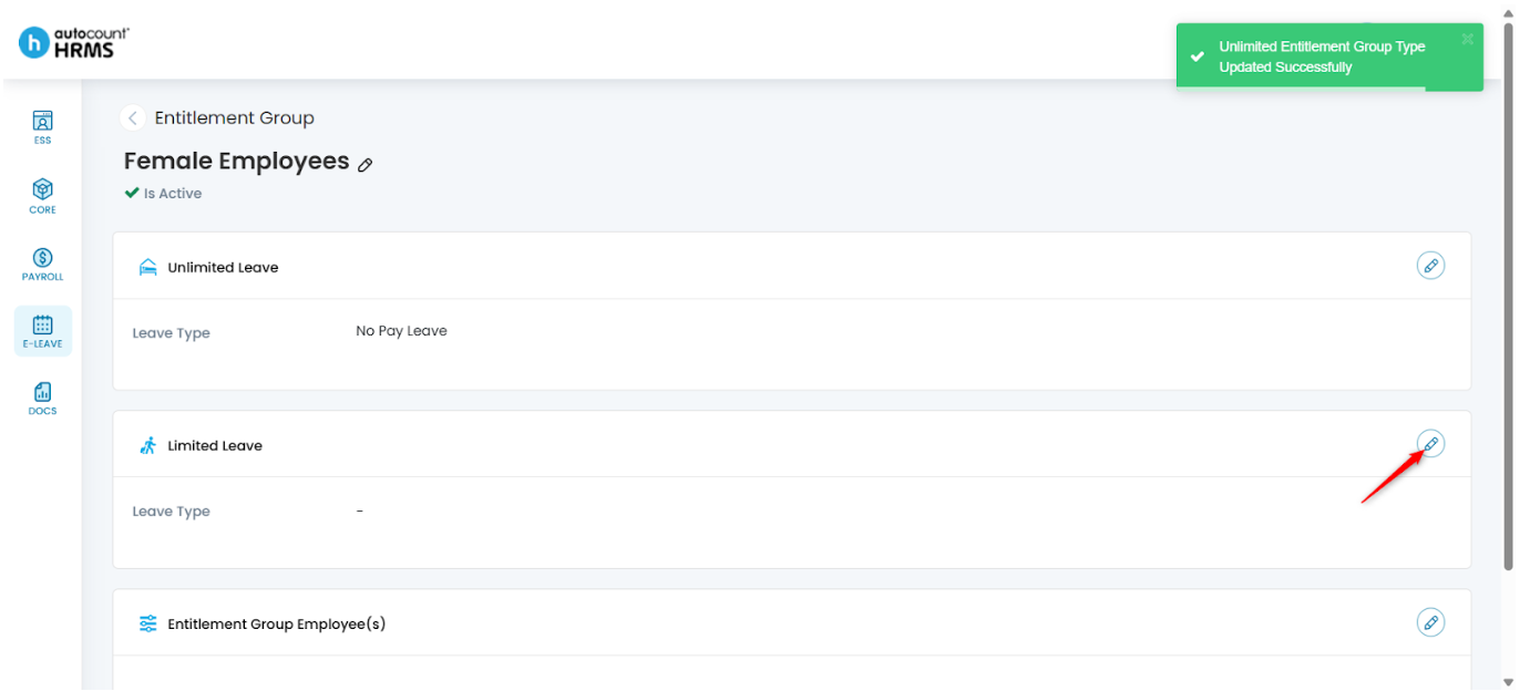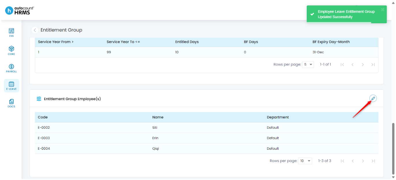 2. Under Entitlement Group Employee(s), click the pencil icon.