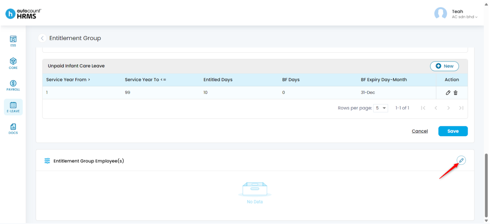 i. Click the pencil icon next to Entitlement Group Employee(s).