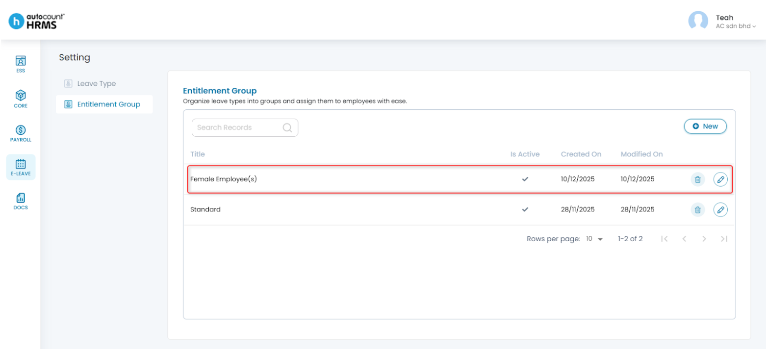 An Entitlement Group allows employers to bundle multiple Leave Types and assign them to employees based on eligibility or company policy. Employees assigned to an Entitlement Group can only apply for the leave types included in that group.