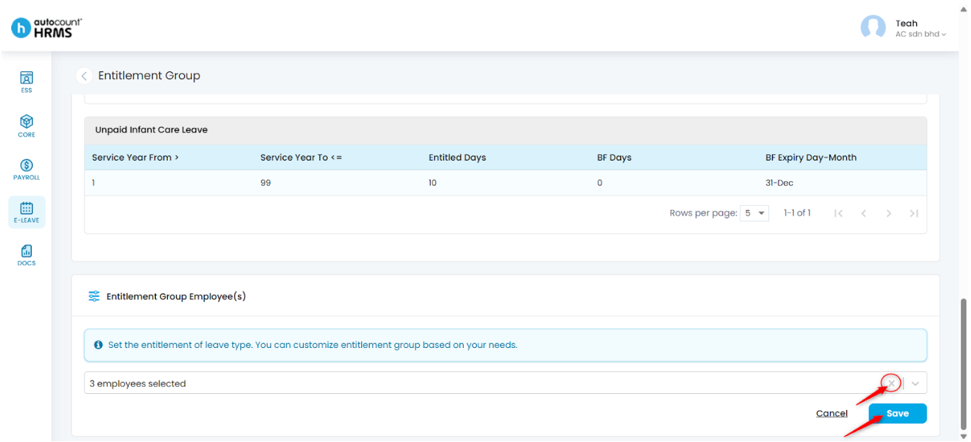 3. Click the cross icon to remove the assigned employee(s), then click Save.