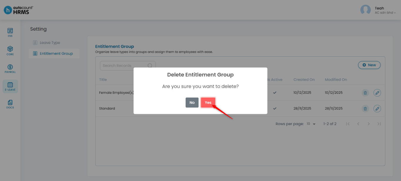 Note: Entitlement Groups that are assigned to an employee cannot be deleted.