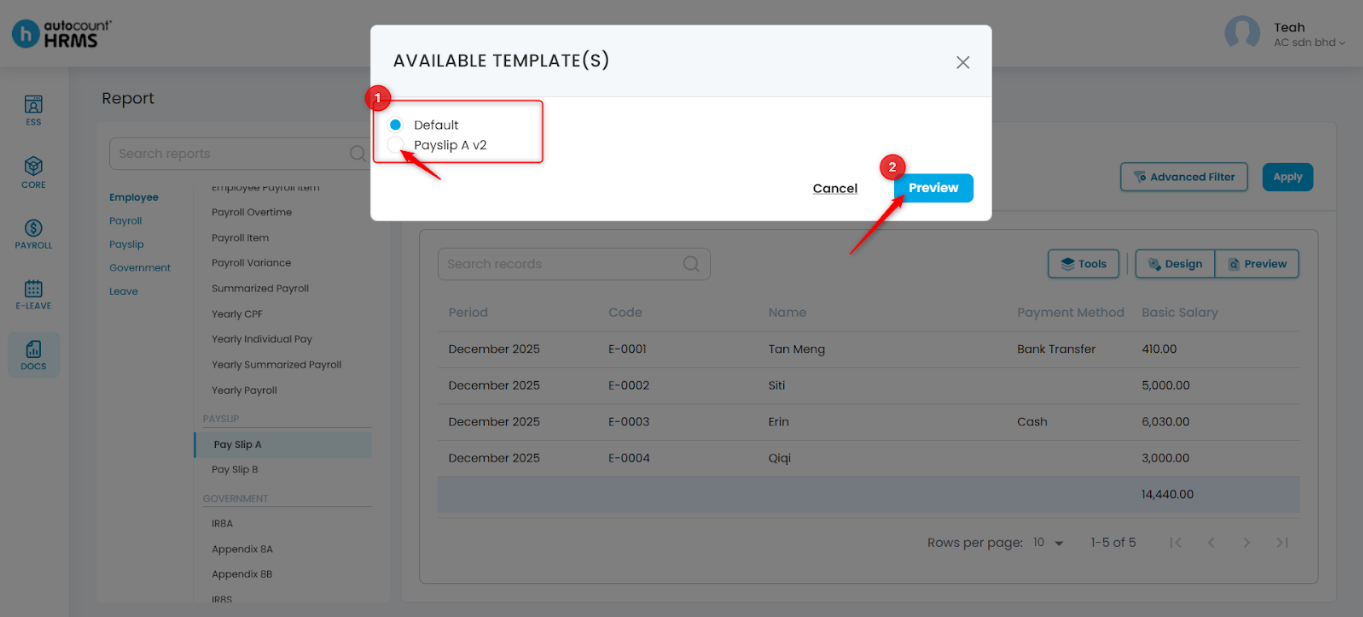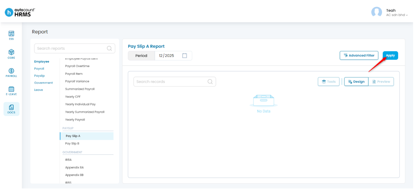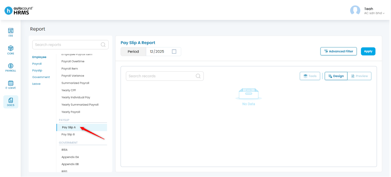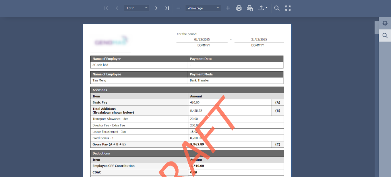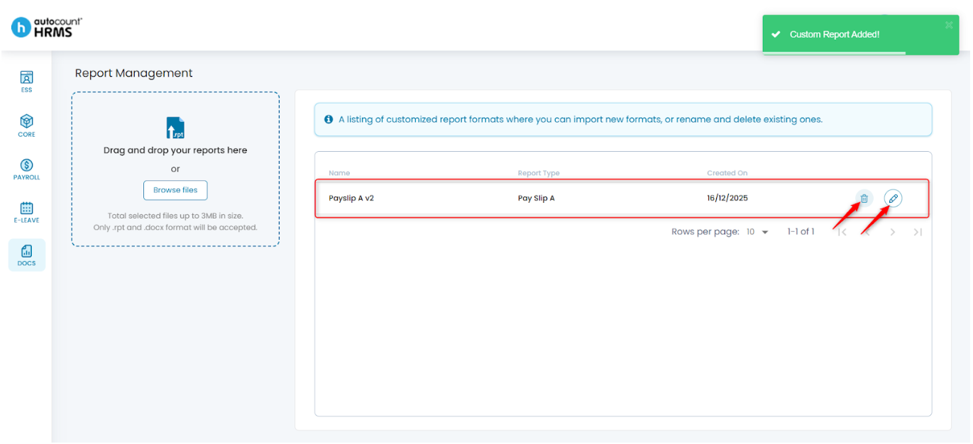 Report Management allows employers to upload customised report formats and HR letter templates based on company requirements. These formats can then be selected and used when generating reports under Docs > Report and HR Letter under Docs > HR Letter.