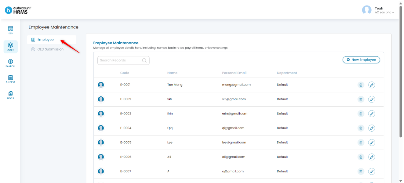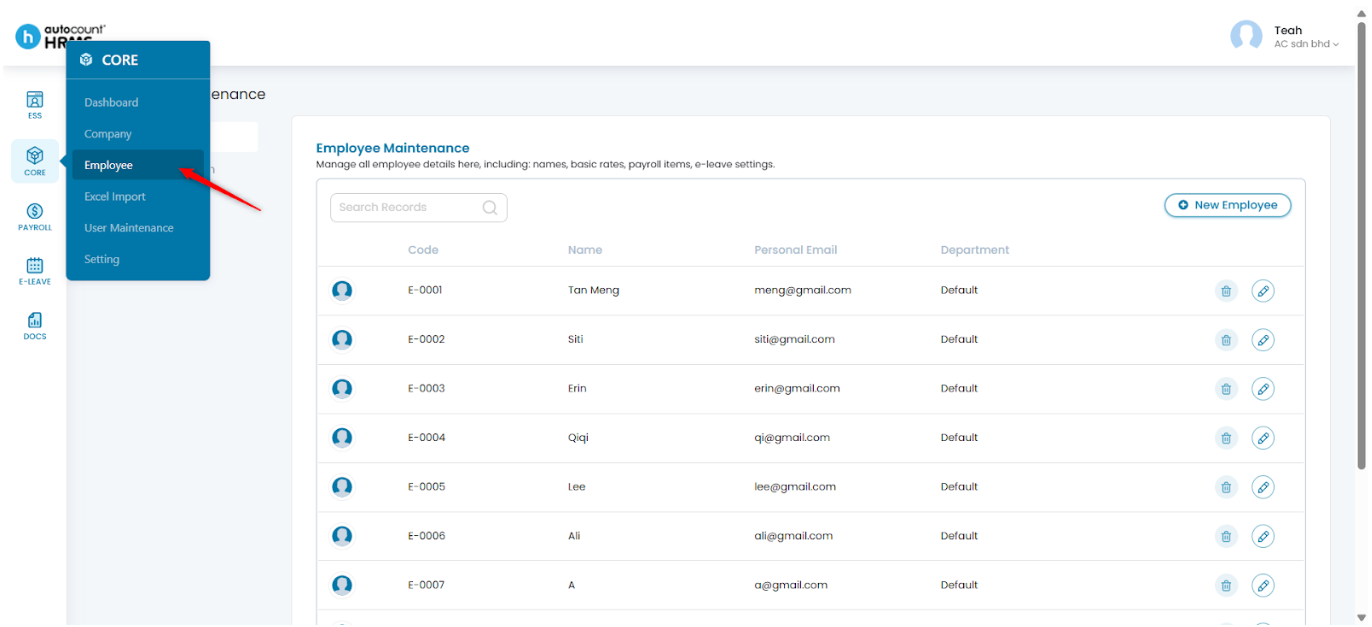 1. Go to Core > Employee.