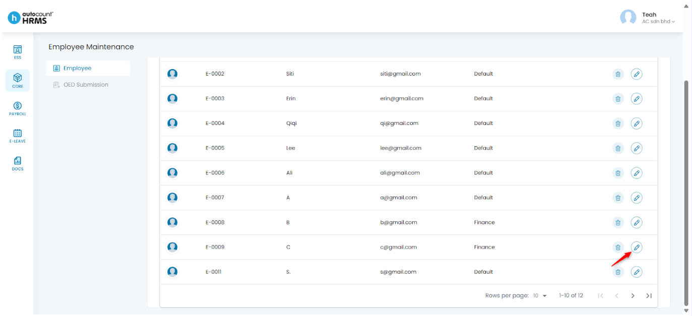 3. Locate the employee and click the pencil icon to open the Employee Profile.
