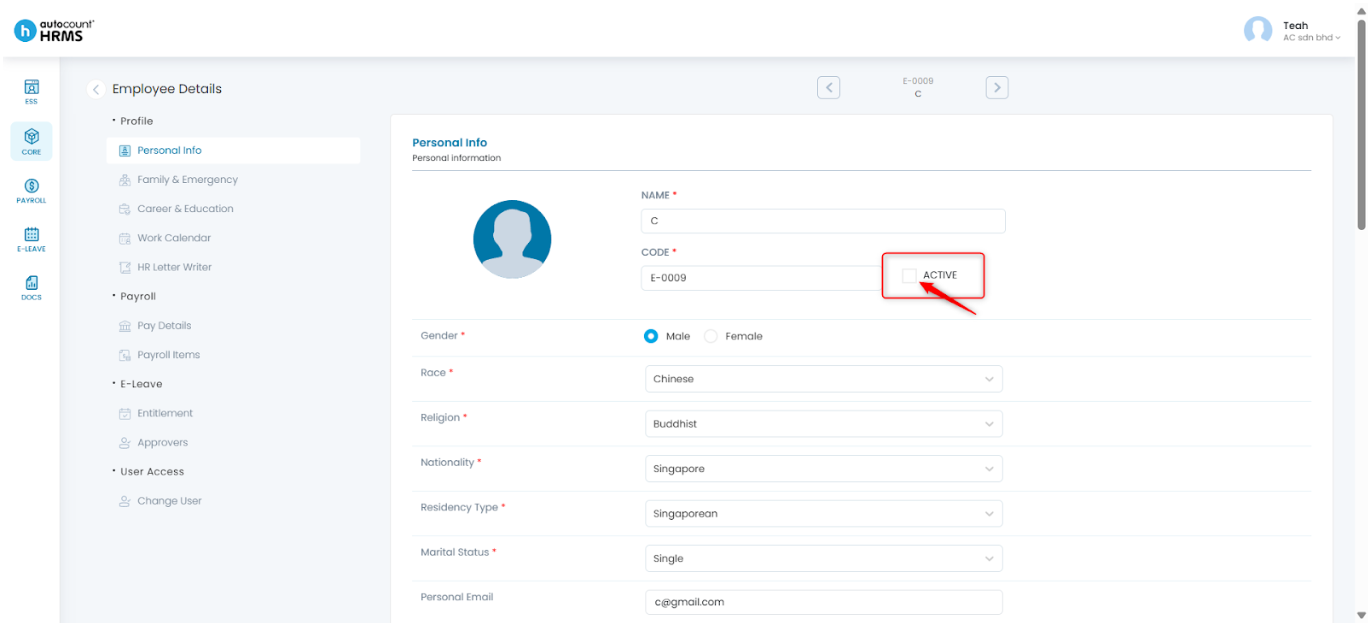 Instead of deleting the employee, we recommend marking the employee as Inactive. This preserves historical data while ensuring the employee is excluded from future payroll and HR processes.