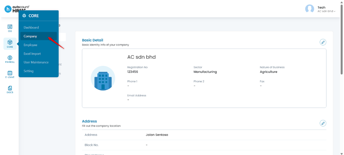 1. Go to Core > Company.