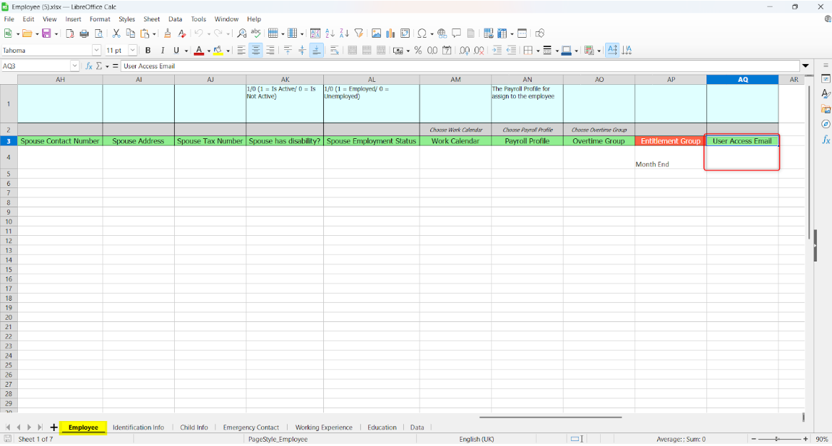 Method 1: Include the employee's email address in the User Access Email column when importing employee details via Excel Import (Employee template)