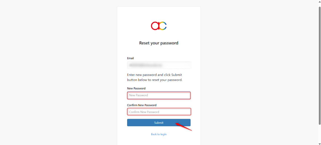 6. Enter and confirm your new password, then click Submit.